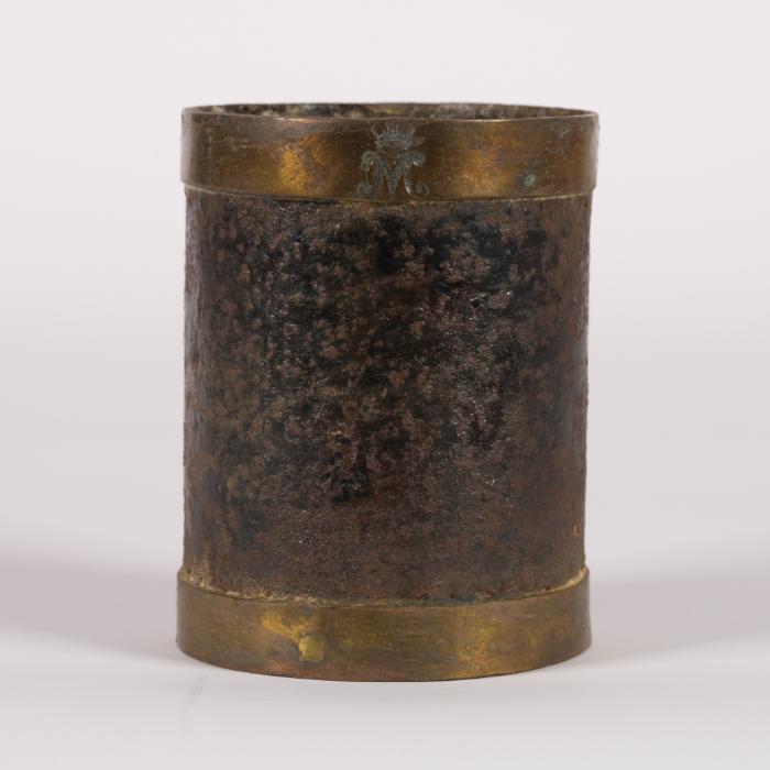 DescriptionPart of a collection of seventeen Wine, Oil and Cereal Measures with the Coat-of-Arms of Emanuel De Rohan and the Emblem of the Università.InscriptionsInscribed with "M" and a crown on the brass perimeter.Material