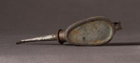 DescriptionA metallic oil can with a knob for depositing oil, sliding window to view interior, and long spout.InscriptionsInscribed "No. 08" and "1/3 PT". Handle inscribed with initials "NF".MaterialTin