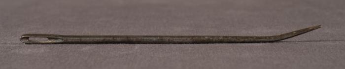 DescriptionA 6-inch sailmaking needle, flattened and bent sharp point, features a threading loop.InscriptionsInscribed "Smith & Son England".Material