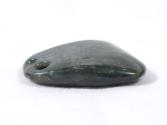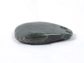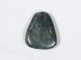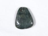 DescriptionTriangular-shaped axe pendant with rounded cutting edge, straight top, with complete drilled hole below and another incomplete; work facets and regrinding evident.MaterialNephrite