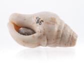 DescriptionSmall gastropod with no perforation, and small stone embedded in lip.MaterialBuccinulum shell