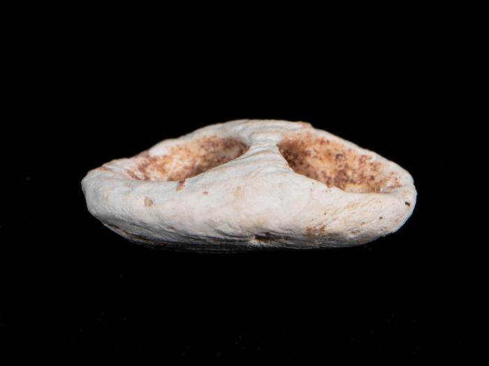 DescriptionDouble 'V'-perforated button; bares staining with red ochre inside the perforations.MaterialCuttlebone