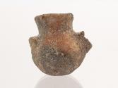 DescriptionMiniature clay container with surviving rim, flat base and part of the handle. Two lugs are applied on the shoulder on the opposite side of the handle.MaterialClay
