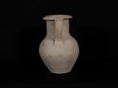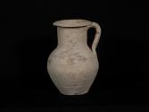 DescriptionA jug utilised as a funerary urn, containing cremated human remains. Complete container with rim, one handle and a flat base. Has traces of white slip.Material