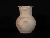 DescriptionAn urn with two handles, one of which is missing. The base is flat and the rim is thin and plain.MaterialClay