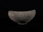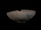 DescriptionThin-walled bowl of grey clay, mis-shapen during manufacture, and over-fired. It stands on a small disc or ring base. The profile is a simple curve. Material