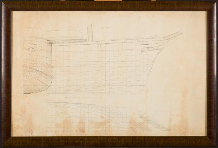 InscriptionsOn recto, various technical words such as "Body Plan", "Sheer", and "Half Breadth Plan".Technique