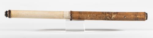 DescriptionMid 18th century card bodied refracting Telescope covered with parchment decorated with flowers; eye-piece missing.MaterialPaper, parchment, metal, turtle