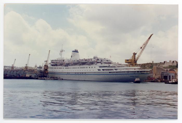 Malta Shiprepair Yard - passenger Ship "Saga Rose" renamed Ship "Sagafjord" entering drydock