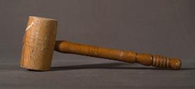 DescriptionIt has a cylindrical head with three shallow grooves running along its width as decoration. The handle is inserted into the head and is lathe turned annd decorated, especially at the tip.MaterialWood