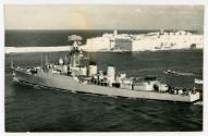 British Frigate Type 81 "MOHAWK" (F125) (1962) existing the Grand Harbour, Malta
