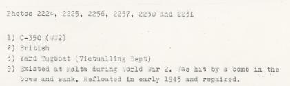 DescriptionExisted at Malta during World War 2. Was hit by a bomb in the bows and sank. Refloated in early 1945 and repaired.Special Collection