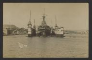 Admiralty Floating Dock No. 8, with Revenge-class battleship HMS Royal Oak (08) within, at Corradino, Grand Harbour, Malta