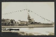 (Light Cruiser?) in (Dockyard Creek?), Grand Harbour, Malta, with (Senglea?) in the background
