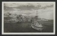 (Dreadnought battleship?) in Grand Harbour, Malta, with Valletta in the background