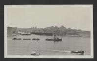Harbour Tug towing a number of barges between Fort St. Angelo and Senglea