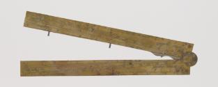 DescriptionAn 18th century brass proportional divider, made of two limbs, hinged together at one end and engraved with trigonometrical scales and graduated lines of sines, tangents and other geometric functions. Such instruments were used by draughtsmen, engineers and navigators. French origin.InscriptionsOn each arm, recto "Parties égales" and verso "Cordes". Other inscriptions, recto "Plans 6/0"; "Poligones"; "Calibres des pieces"; and verso "Solides"; "Metaux"; "Poids des boulets"; "Haring, Palais Ral No.63 a Paris".MaterialBrass