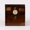 A chronometer was used to find the longitude at sea by comparing the time on an accurate clock, set to the time at the ship's home port, with that of a measurement of the local time at the ship's position. It was typical for nineteenth century chronometers to be placed in brass bound, square section mahogany cases with double-hinged top and side carrying handles (Baddeley, 1993: 45).