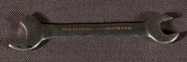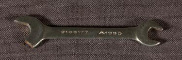 DescriptionA small open ended wrench with a damaged head.InscriptionsOn recto, marked '9106177', a Ministry of Defence Broad Arrow (1964-) and presumed production date '1965'.Annotations and MarksOn verso, marked '0BA BEDFORD-VANADIUM 28A'.Material