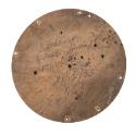 DescriptionThis is a pattern for a ship's badge. It is round, made up of two brown, concentric wooden circles of different tonalities. It reprresents a rather elaborately carved depiction of Poseidon's trident and a medium-sized chevron, both made of wood. The trident, an attribute of Poseidon/Neptune as well as of Britannia, has a three-pronged spear.H.M.S Chevron (R51) was a C-class destroyer of the Royal Navy that was in service from August 1945 to the 1960s. On 31 October 1954, the aircraft carrier Triumph and Chevron were in Malta, open for visitors. Triumph was berthed in Grand Harbour and Chevron in Sliema Creek.InscriptionsOn verso, in black ink "Chevron Crests for ships boat 13 No. G.M. 21/12/53 M.C.D".Material