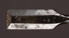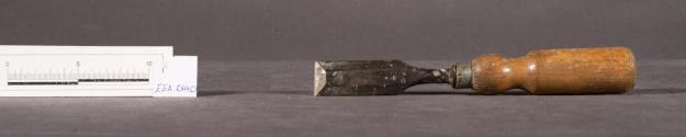DescriptionA turning chisel composed of a wooden handle, a metallic ferrule (aluminium?) and a turning chisel blade with a thin flat edge, a multi-faceted upper face and a flat lower face, giving the tool a trapezoidal crossection. Blade is also inscribed Made in England and bears a Footprint trademark.InscriptionsInscribed "Made in England".Annotations and MarksFootprint trademark.MaterialWood; steel; aluminium