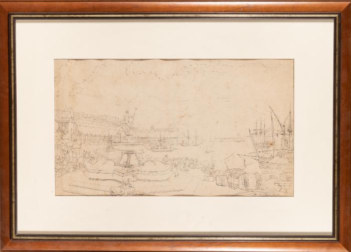 BiographyGiorgio Pullicino (1778–1852), a Maltese landscape painter and architect, was born in Valletta. He pursued his studies at the Accademia di San Luca in Rome and, in 1803, was appointed Professor of Drawing at the University of Malta, a position he held alongside the painter Michele Busuttil (1750–1828). Pullicino is particularly noted for his harbour scenes, which he rendered using various mediums. Additionally, he is regarded as one of the pioneering figures of neoclassical architecture in Malta.